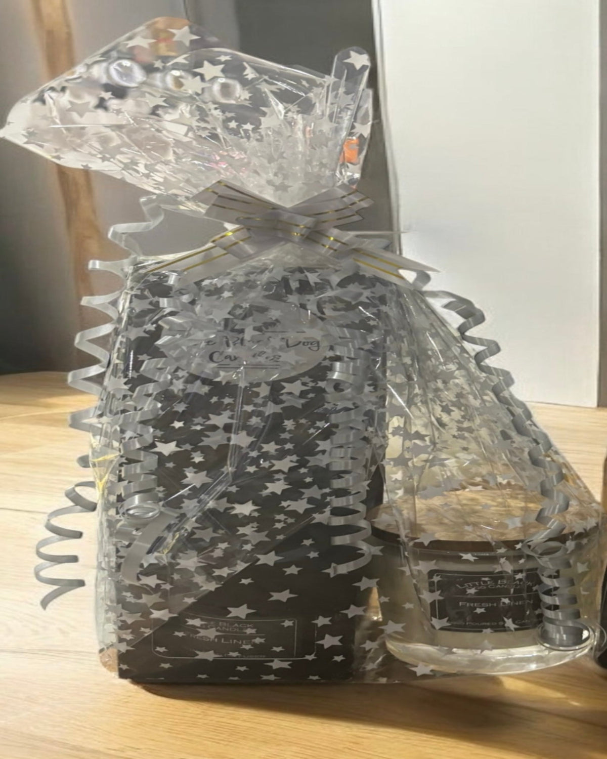 Each gift set contains a candle and a reed diffuser, wrapped in cellophane.